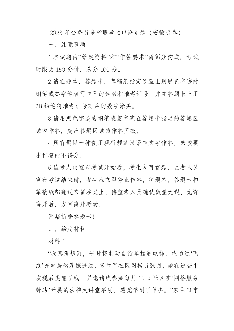 / 2023年公务员多省联考《申论》题(安徽C卷)