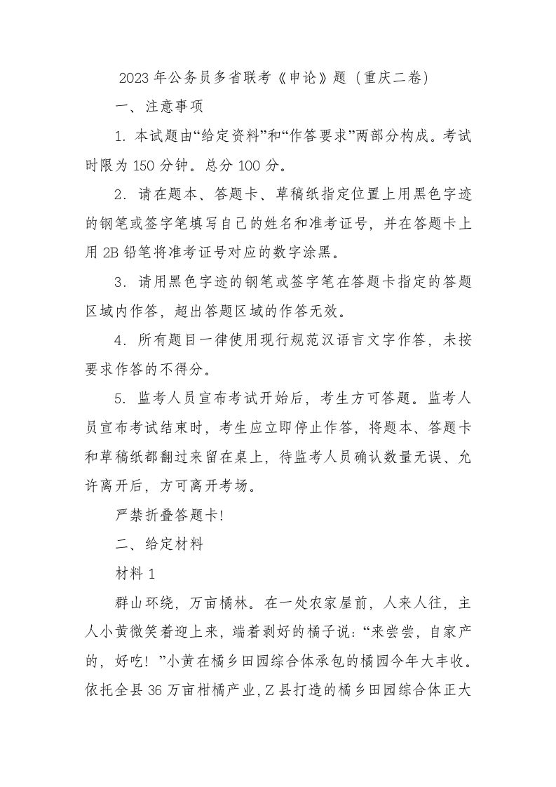 / 2023年公务员多省联考《申论》题(重庆二卷)