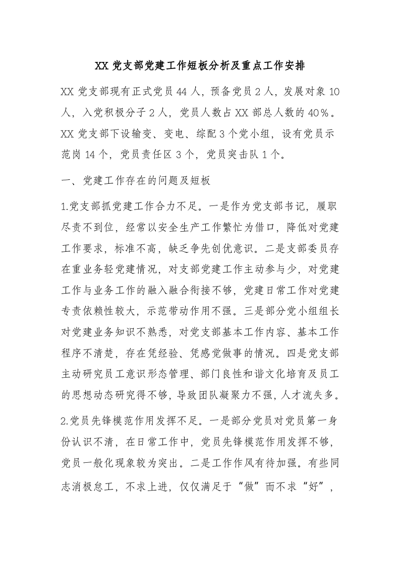 / XX党支部党建工作短板分析及重点工作安排