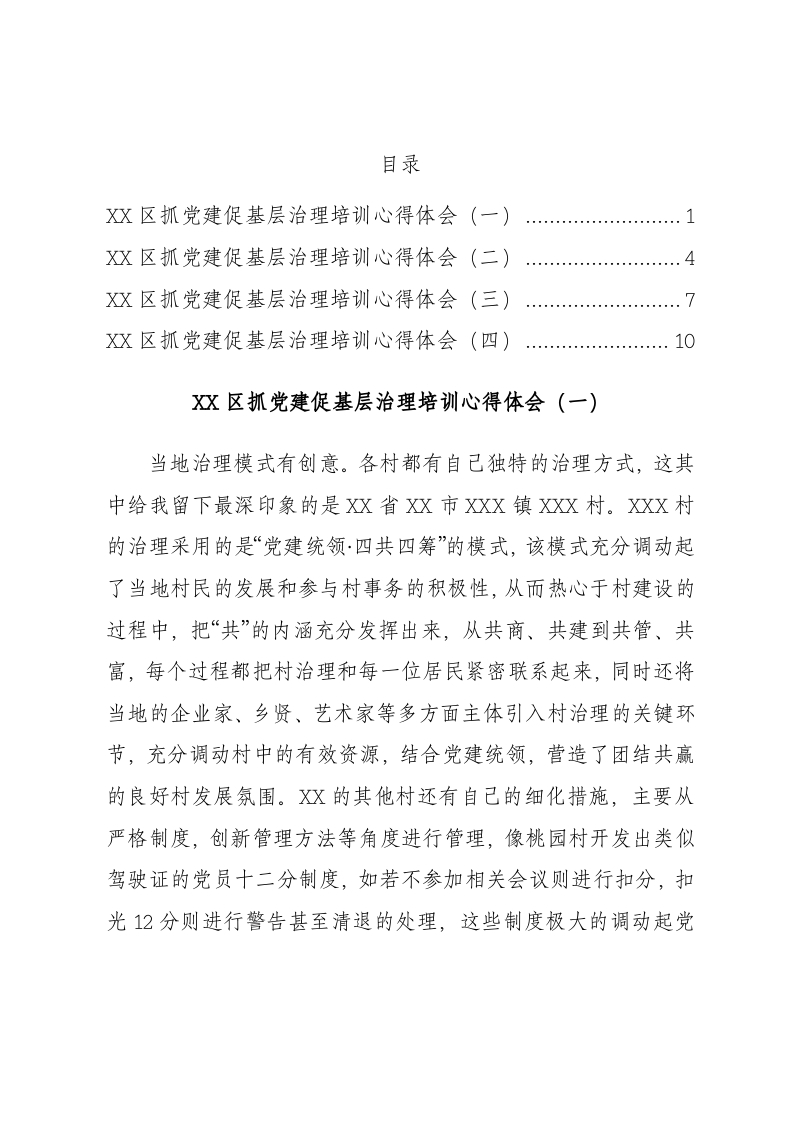 / XX区抓党建促基层治理培训心得体会汇编4篇