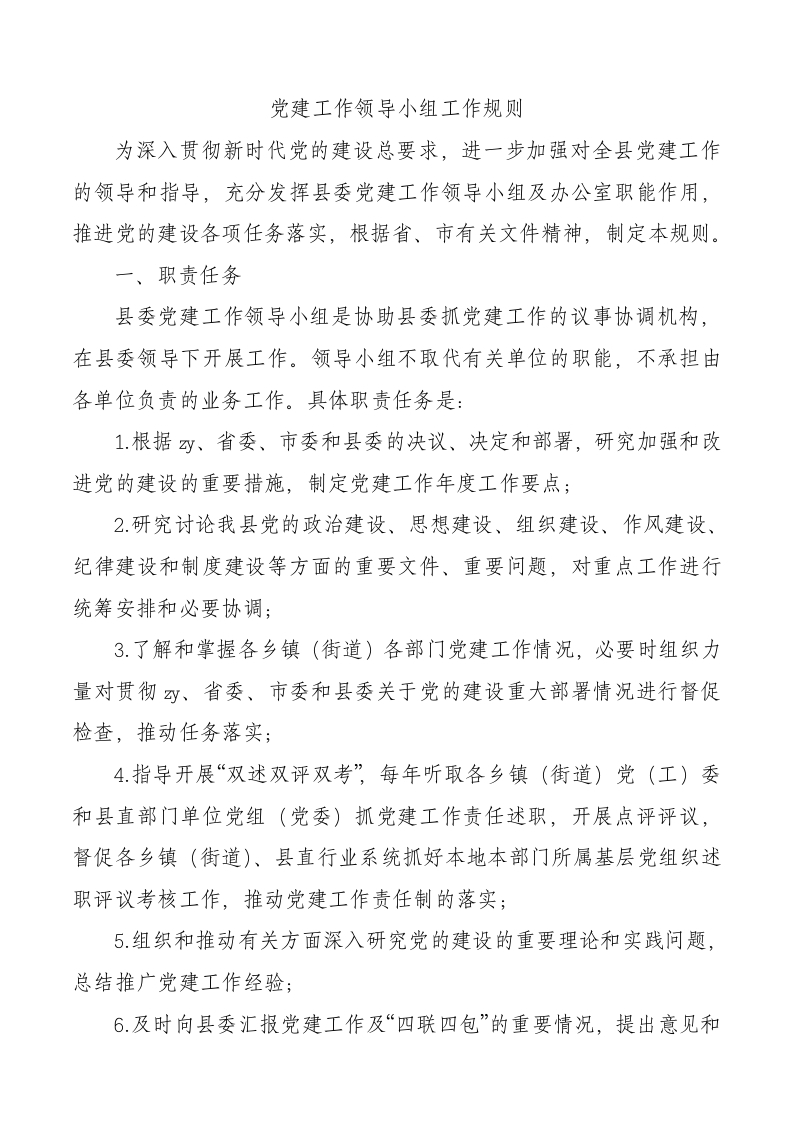 / 党建工作领导小组工作规则