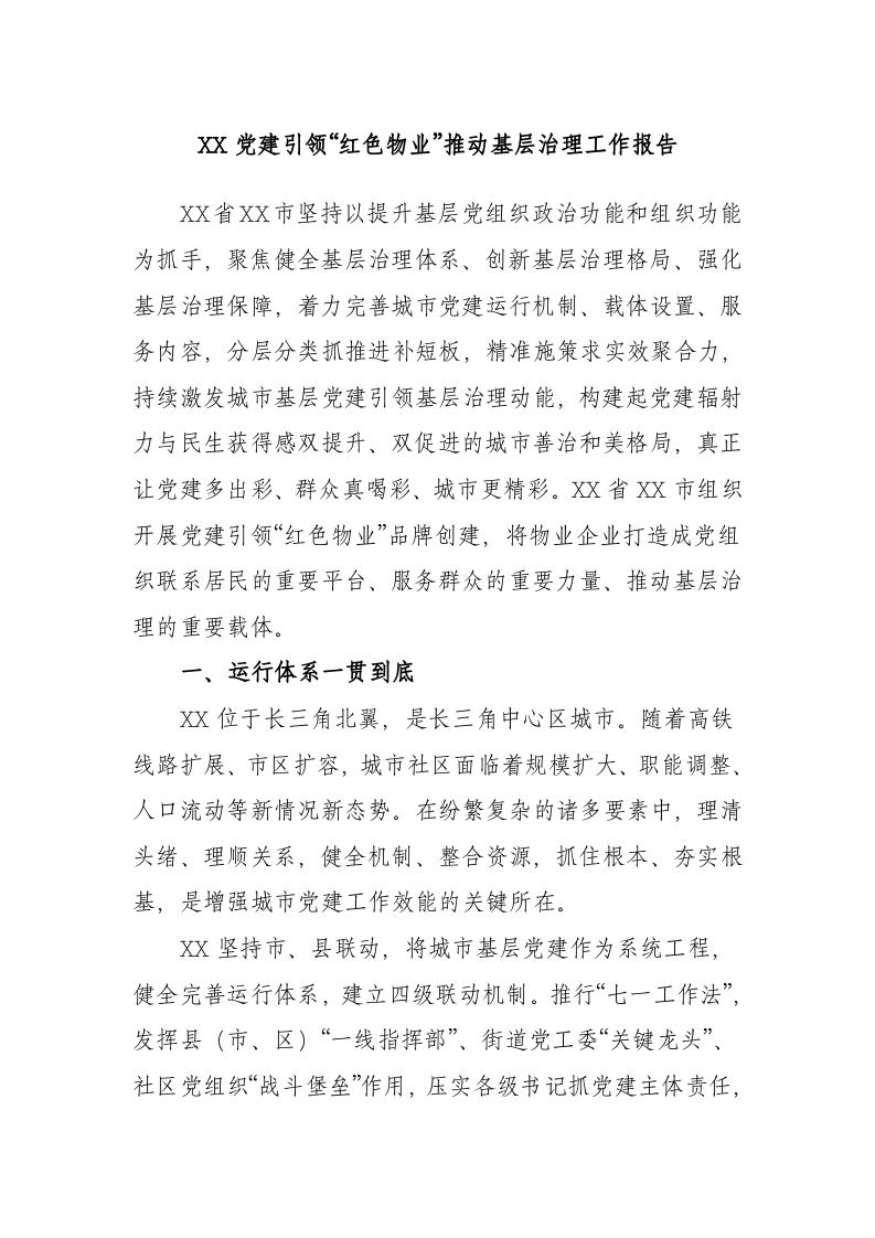 / 党建引领“红色物业”推动基层治理工作报告
