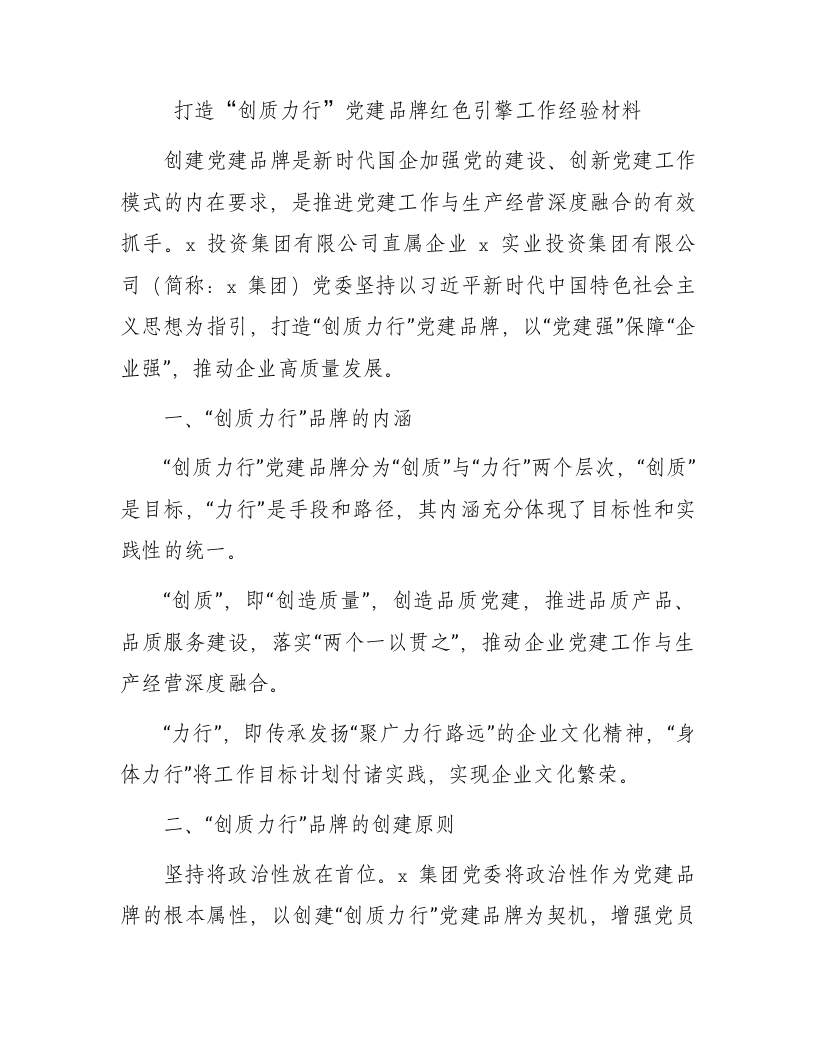 / 国企“创质力行”党建品牌红色引擎工作经验