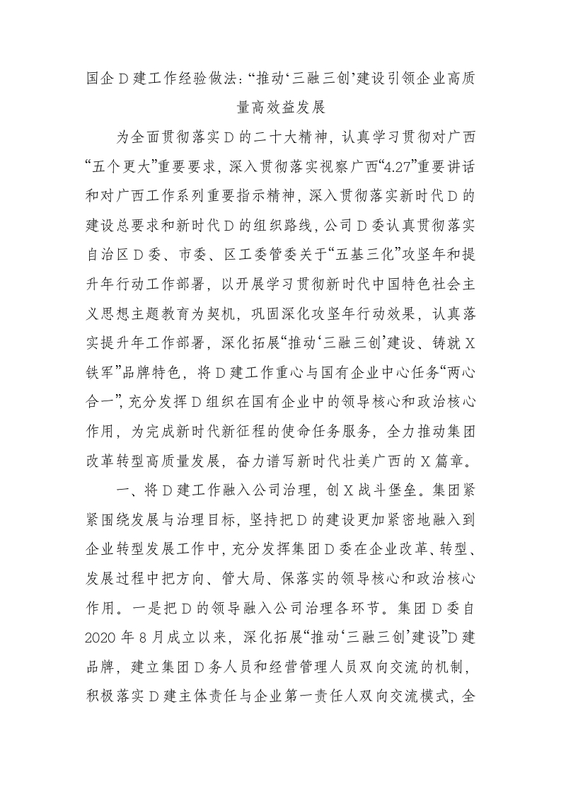/ 国企党建工作经验做法:“推动‘三融三创’建设+引领企业高质量高效益发展