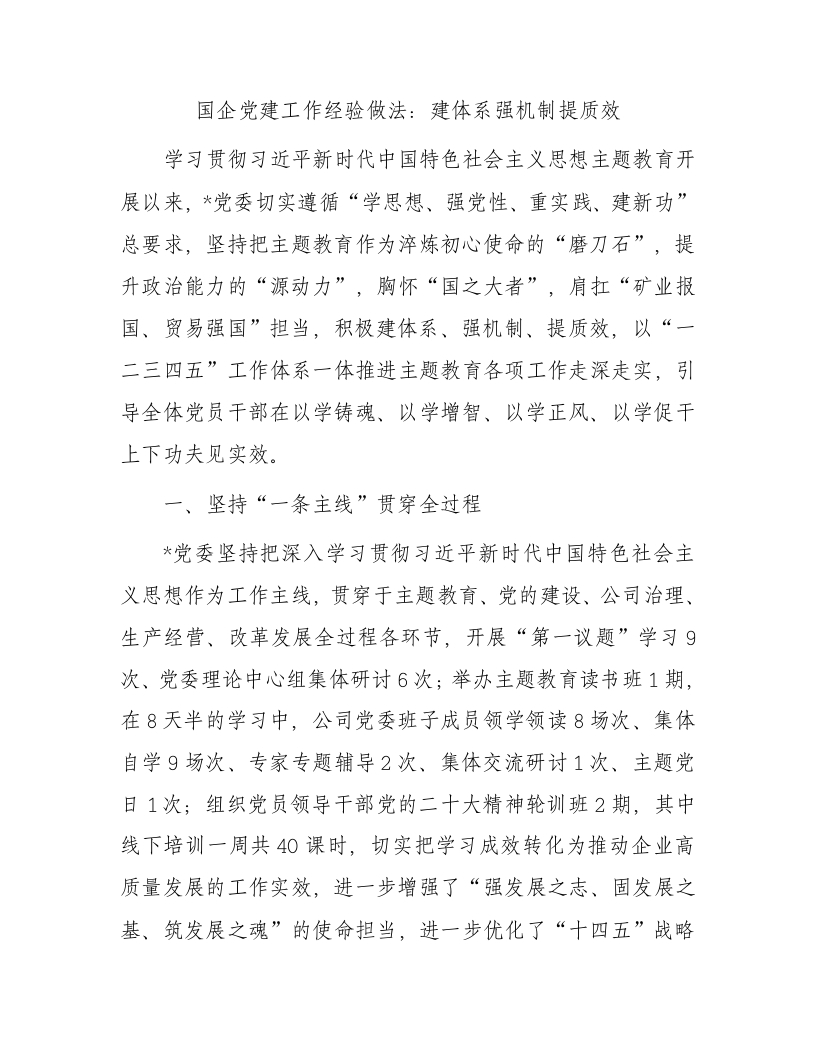 / 国企党建工作经验做法:建体系强机制提质效