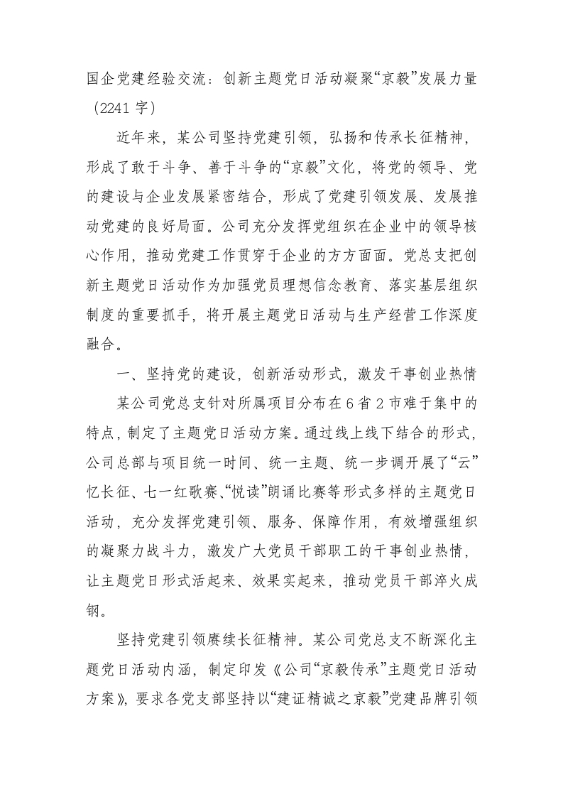 / 国企党建经验交流:创新主题党日活动凝聚“京毅”发展力量
