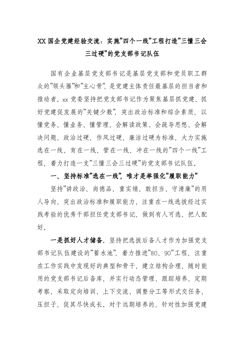 / 国企党建经验交流:实施”四个一线”工程打造”三懂三会三过硬”的党支部书记队伍