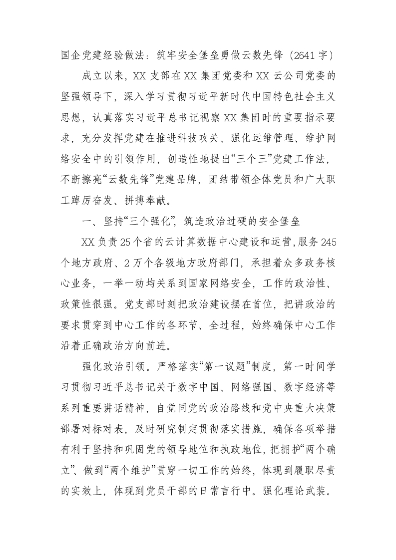 / 国企党建经验做法:筑牢安全堡垒勇做云数先锋
