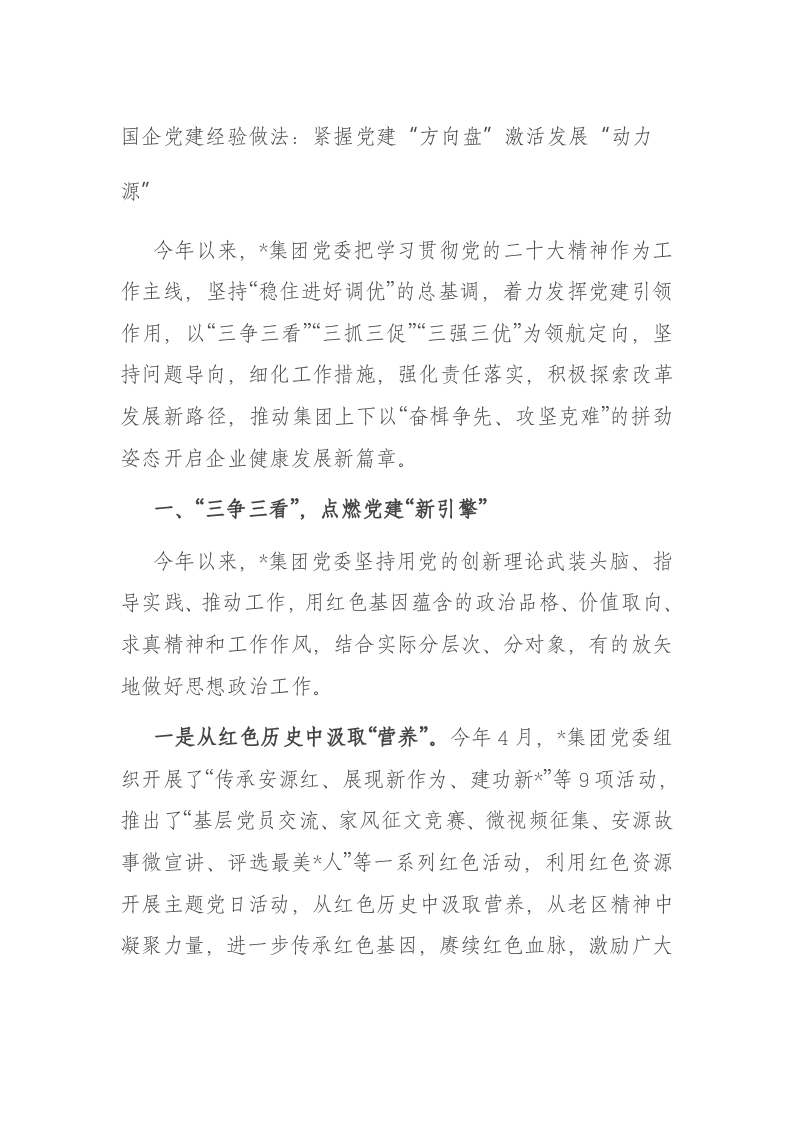 / 国企党建经验做法:紧握党建“方向盘” 激活发展“动力源”