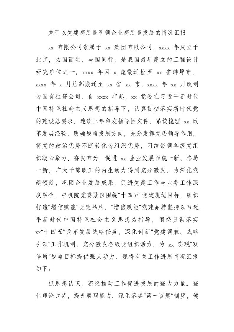 / 国企党建高质量引领企业高质量发展的情况总结汇报