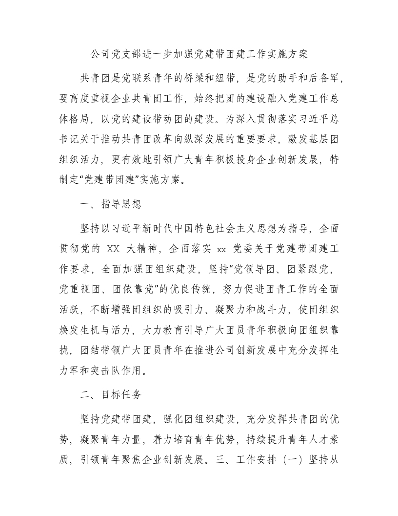 / 国企党支部进一步加强党建带团建工作实施方案