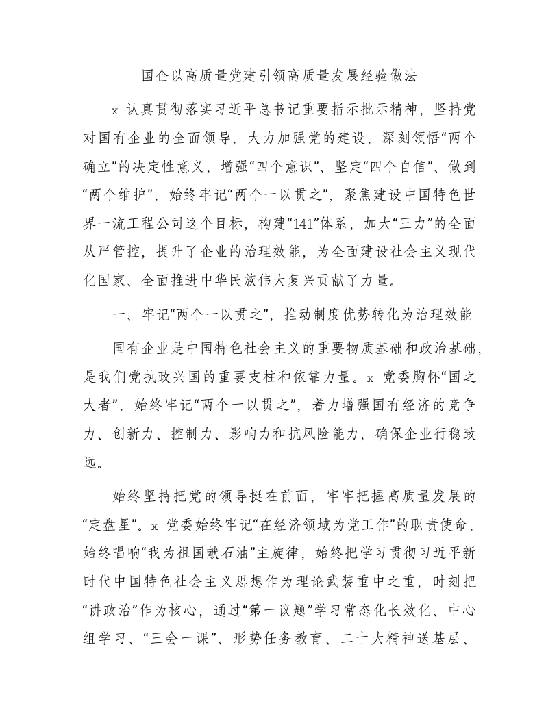 / 国企公司以高质量党建引领高质量发展经验做法总结