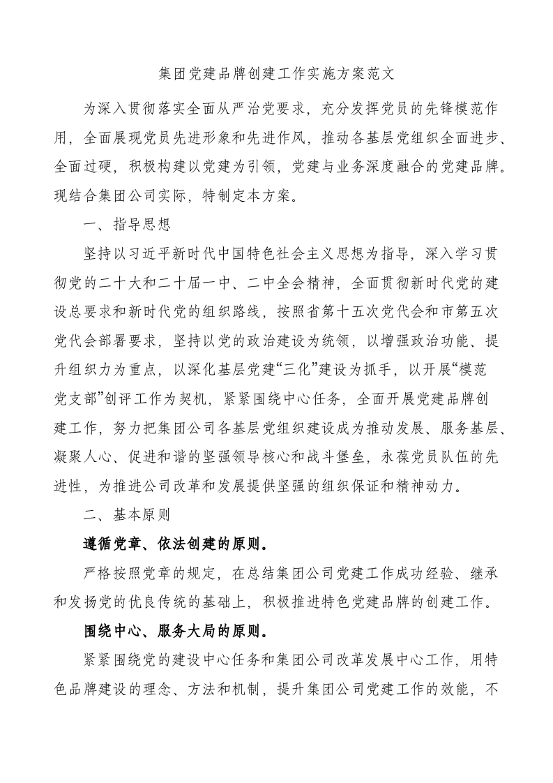 / 国有企业党建品牌创建工作实施方案