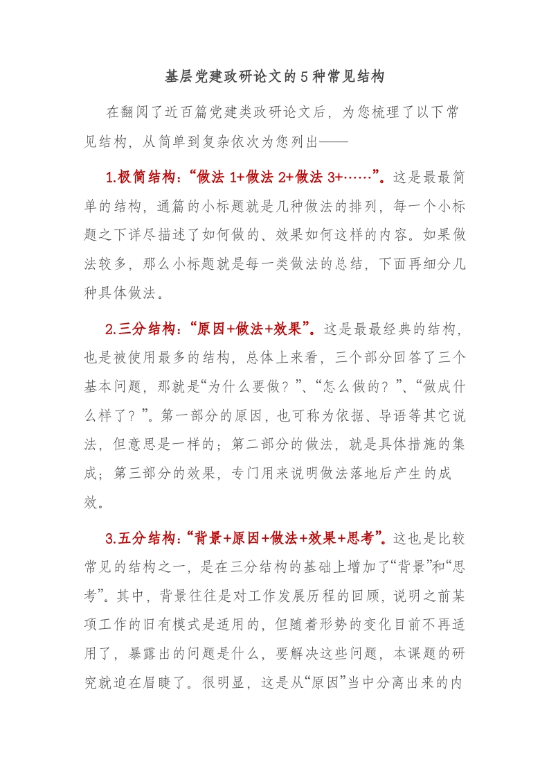 / 基层党建政研论文的5种常见结构