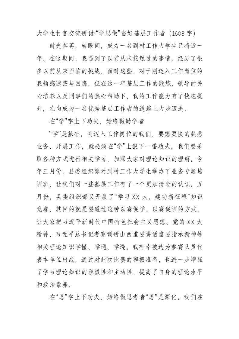 大学生村官交流研讨:“学思做”当好基层工作者