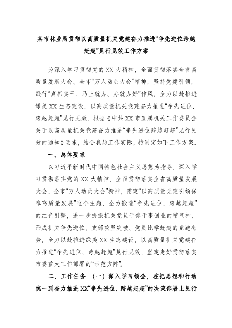 市林业局贯彻以高质量机关党建奋力推进“争先进位跨越赶超”见行见效工作方案
