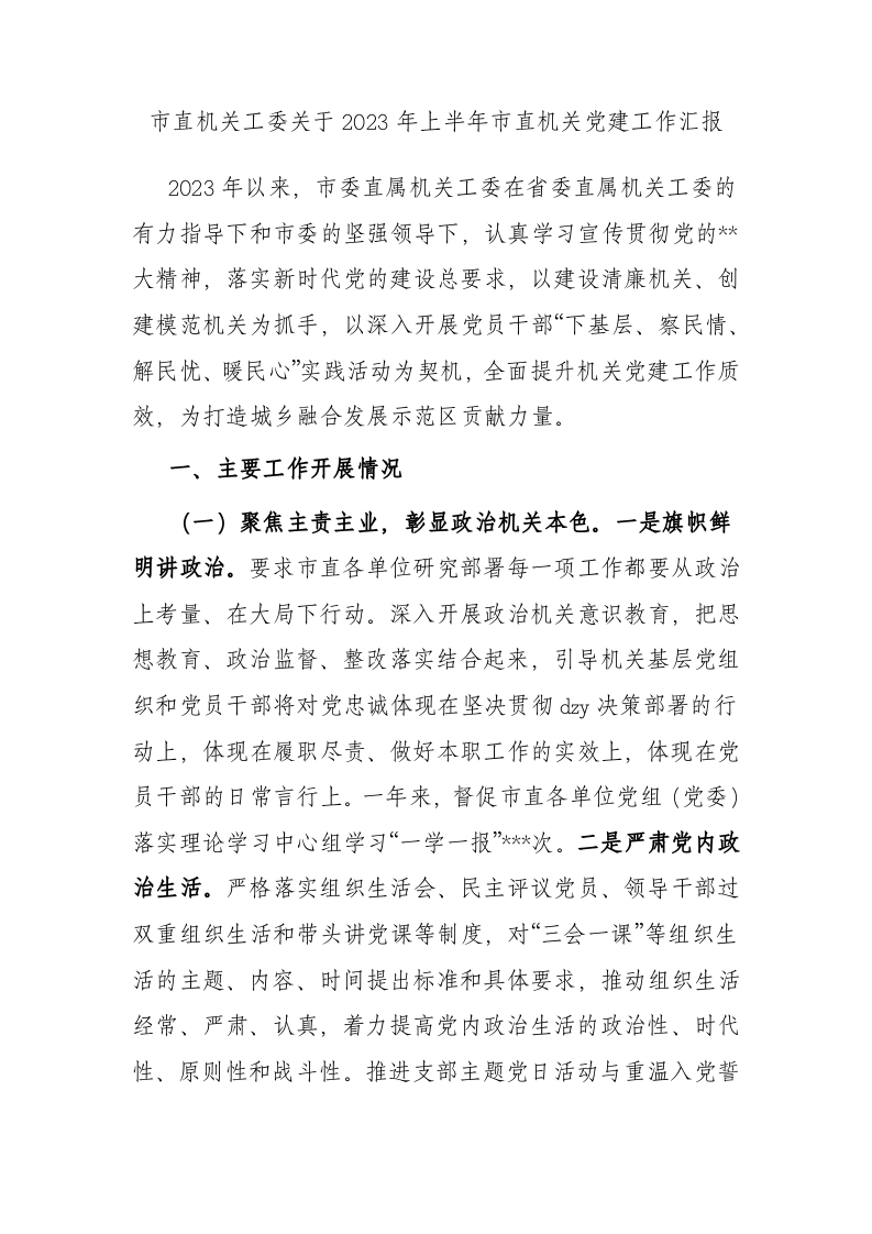 / 市直机关工委2023年上半年市直机关党建工作汇报