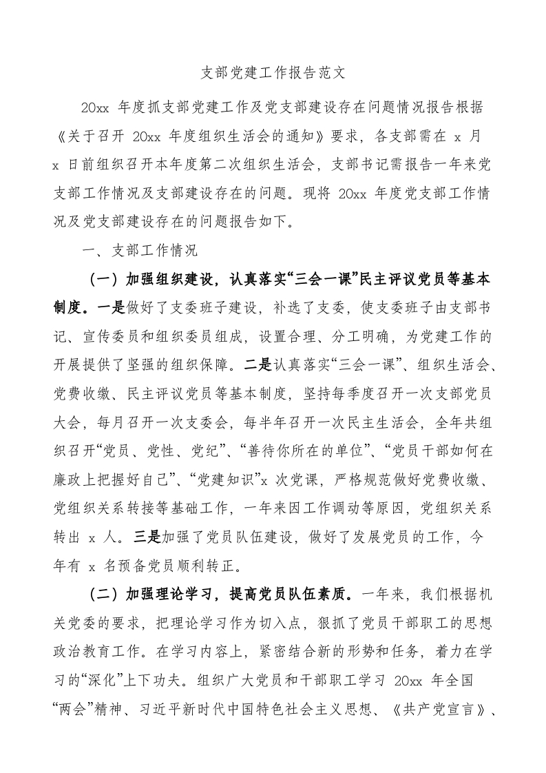 支部党建工作报告(问题整改措施总结汇报)
