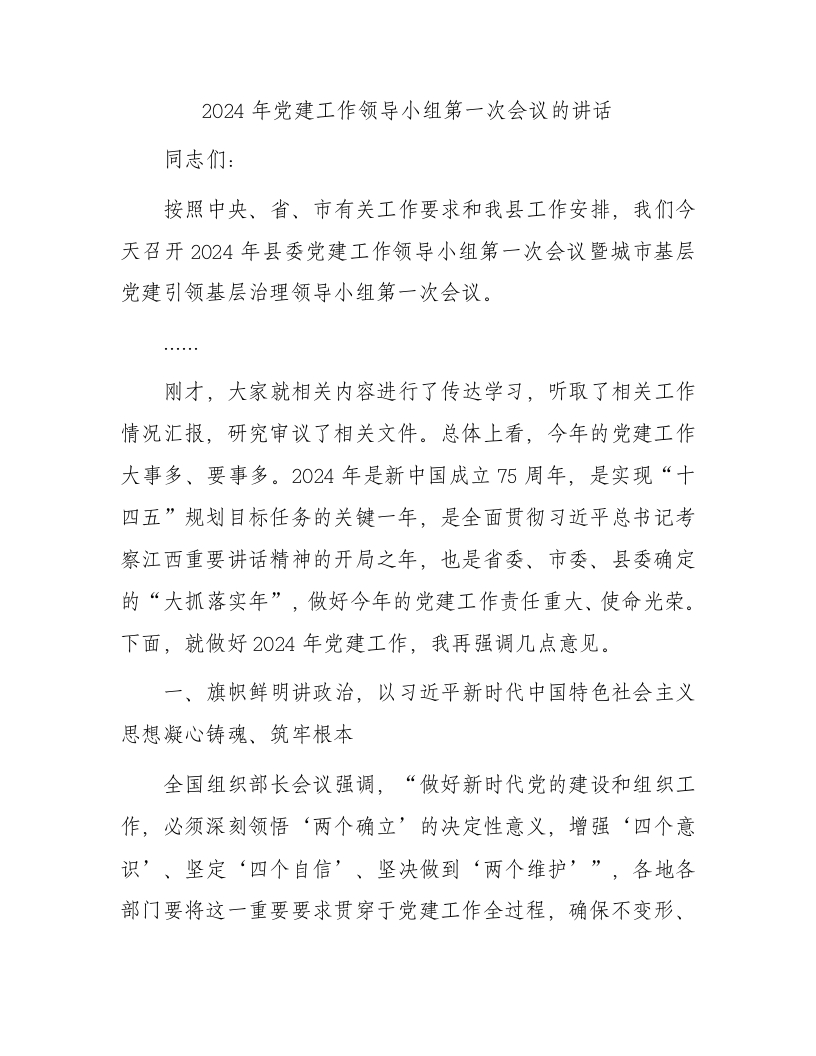 2024年党建工作领导小组第一次会议的讲话