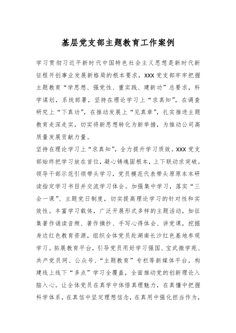基层党支部主题教育工作案例