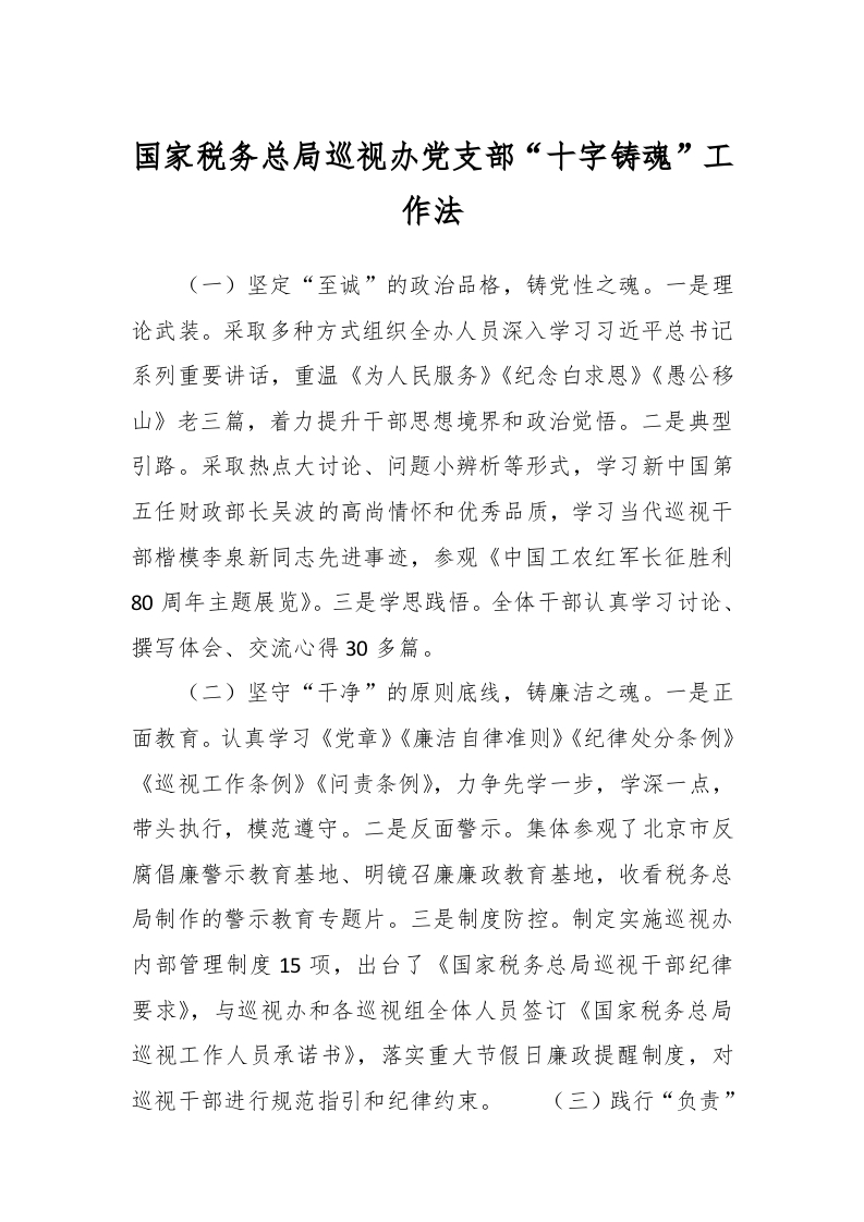 / 国家税务总局巡视办党支部“十字铸魂”工作法