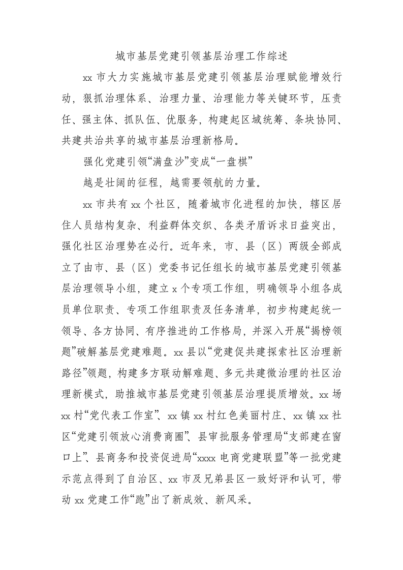 / 城市基层党建引领基层治理工作综述