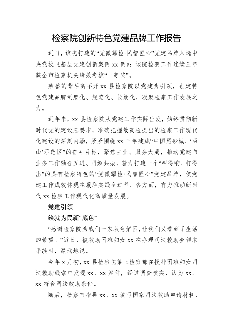 检察院创新特色党建品牌工作报告