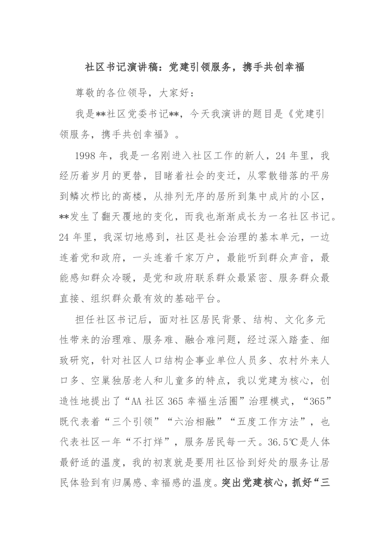 / 社区书记演讲稿:党建引领服务,携手共创幸福