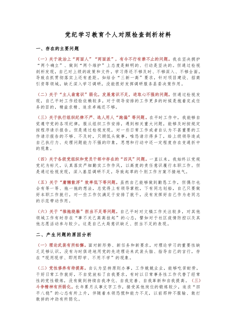 / 党建风党纪学习教育个人对照检查剖析材料ppt下载(讲稿)