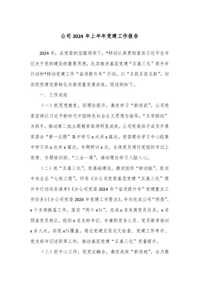 / 公司2024年上半年党建工作报告