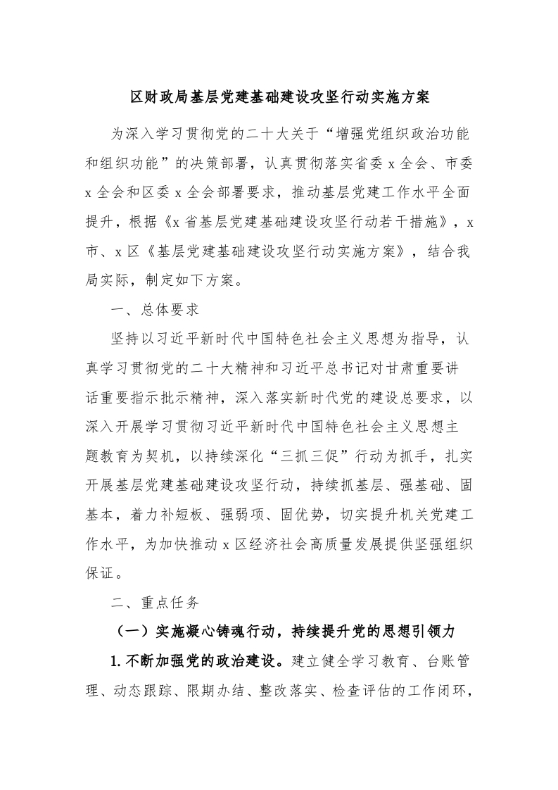 / 区财政局基层党建基础建设攻坚行动实施方案