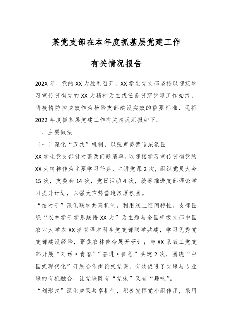 / 某党支部在本年度抓基层党建工作有关情况报告