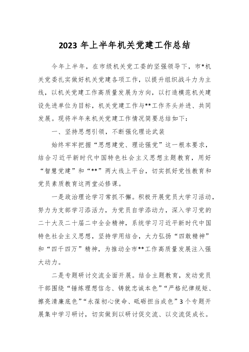 2023年上半年机关党建工作总结
