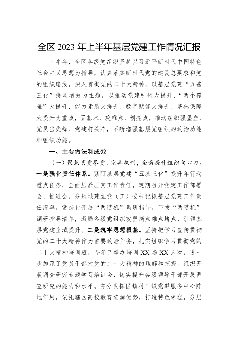 / 全区2023年上半年基层党建工作情况汇报