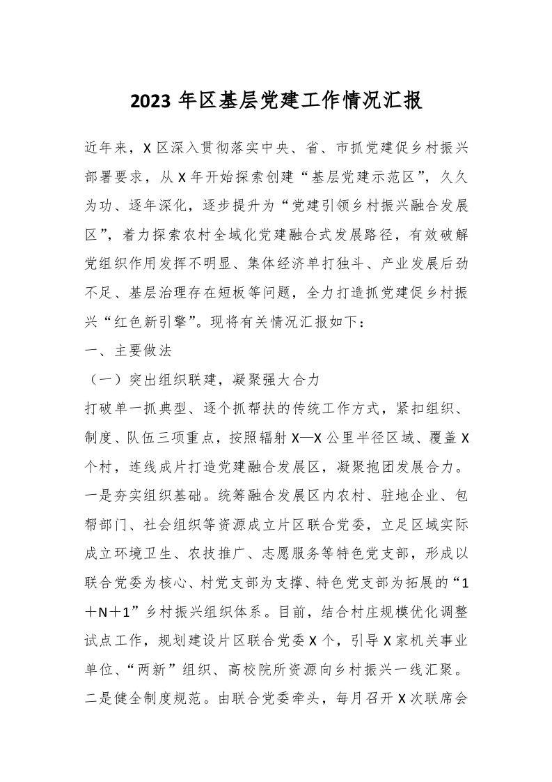 / 2023年区基层党建工作情况汇报