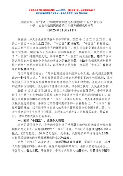 / “党课荟”系列第392期李俭:继往开来:从“十四五”辉煌成就到坚定不移迈向“十五五”新征程(四中全会)