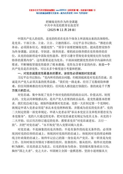 / “党课荟”系列第393期张忠军:把锤炼党性作为终身课题