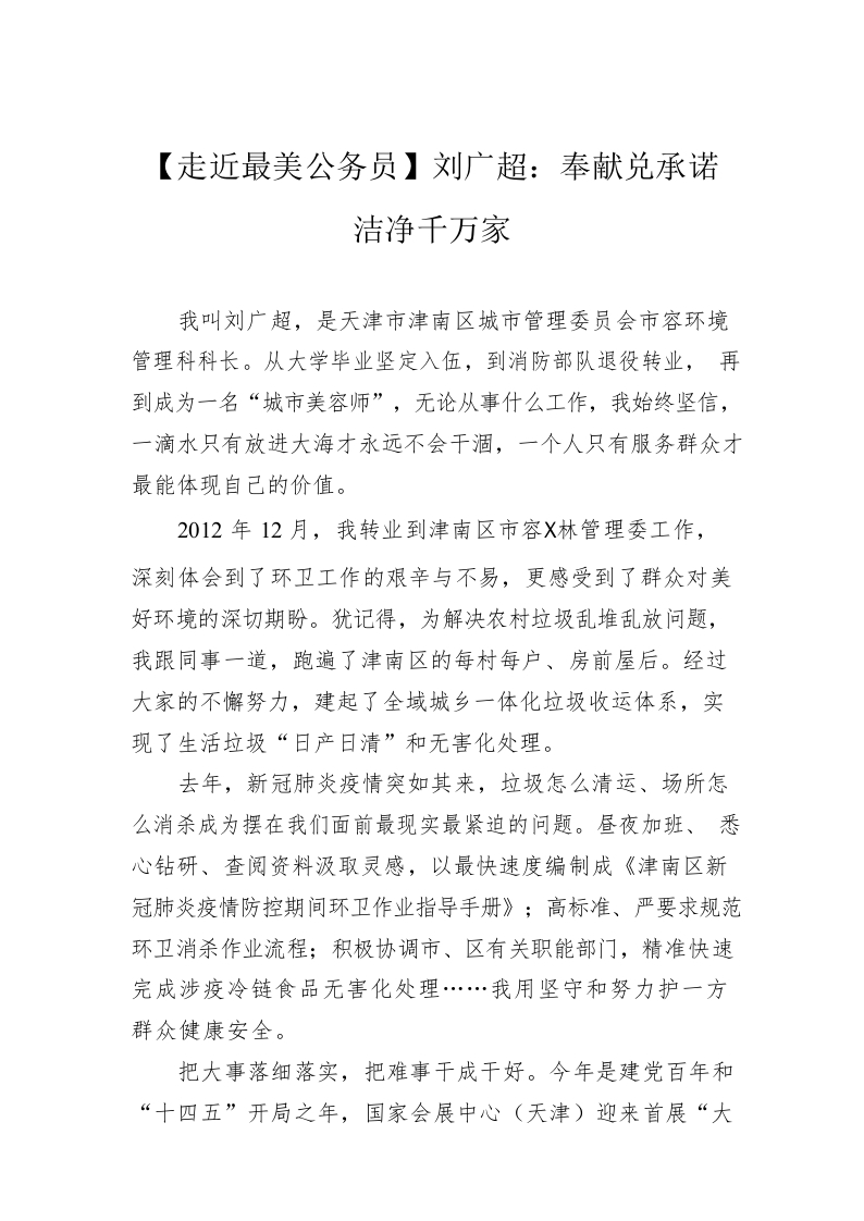 / 【走近最美公务员】刘广超:奉献兑承诺 洁净千万家