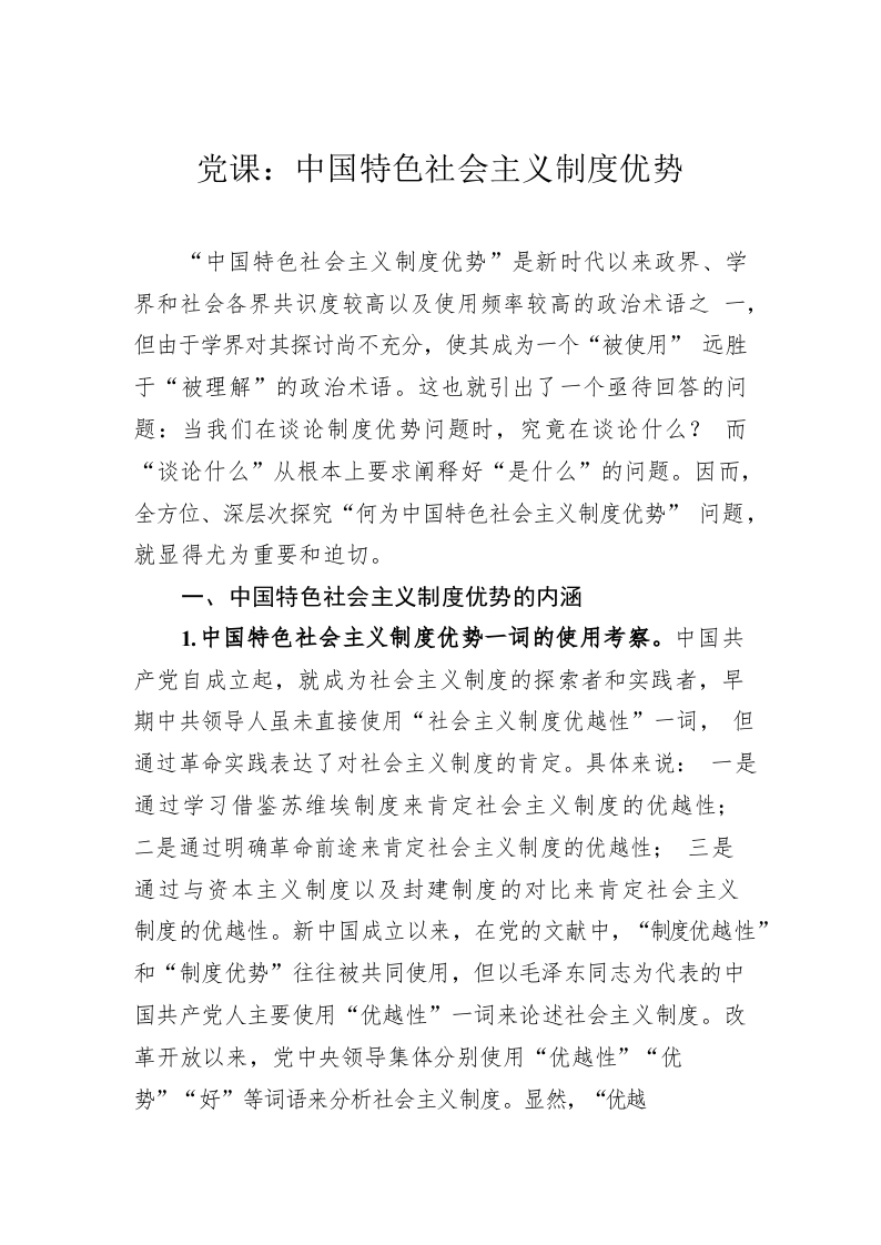 / 党课:中国特色社会主义制度优势