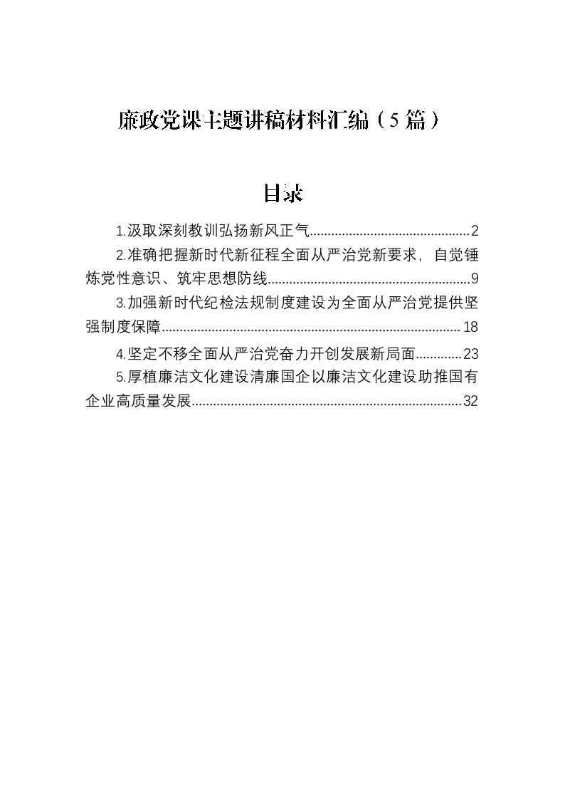 / 廉政党课主题讲稿材料汇编(5篇)