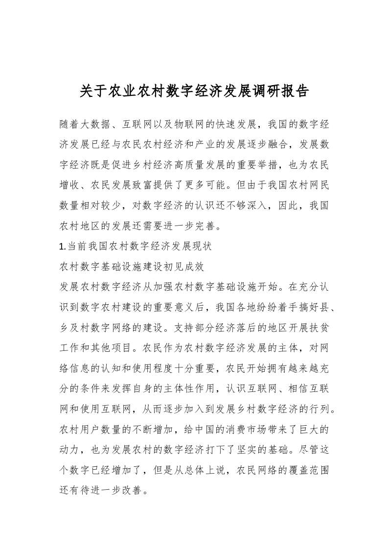 / 关于农业农村数字经济发展调研报告.