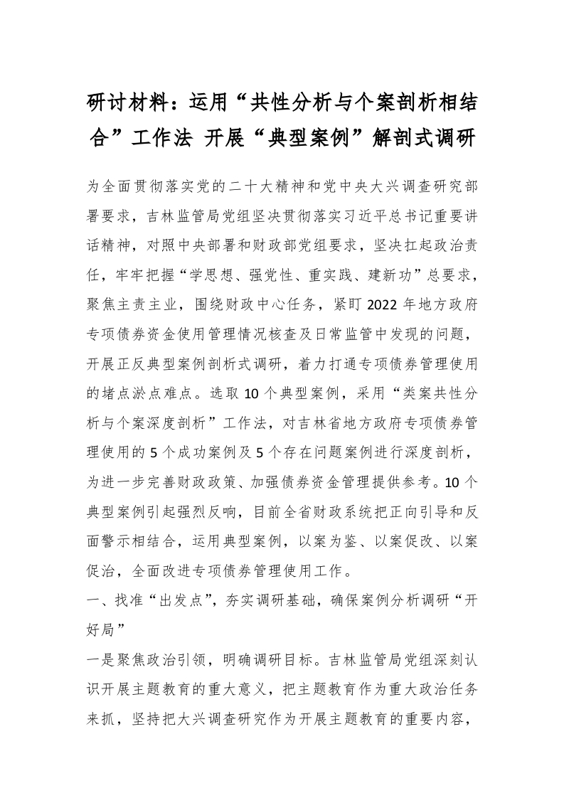 / 研讨材料:运用“共性分析与个案剖析相结合”工作法 开展“典型案例”解剖式调研
