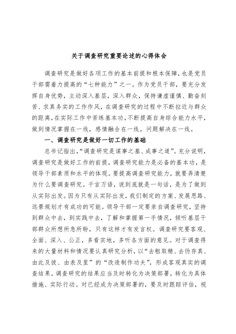 / 关于调查研究重要论述的心得体会