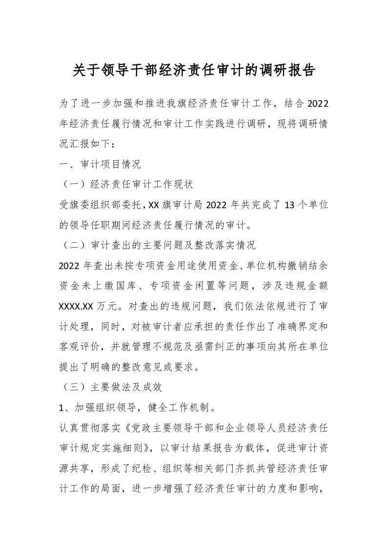 / 关于领导干部经济责任审计的调研报告