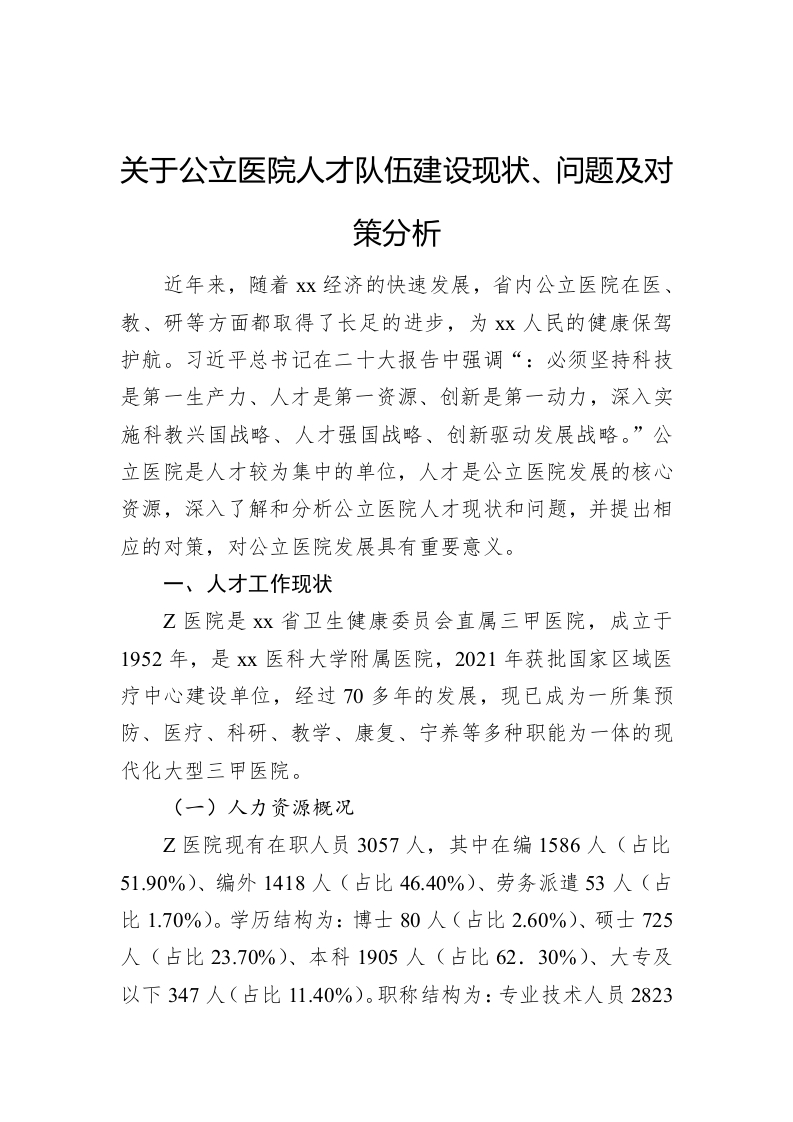 / 关于公立医院人才队伍建设现状、问题及对策分析