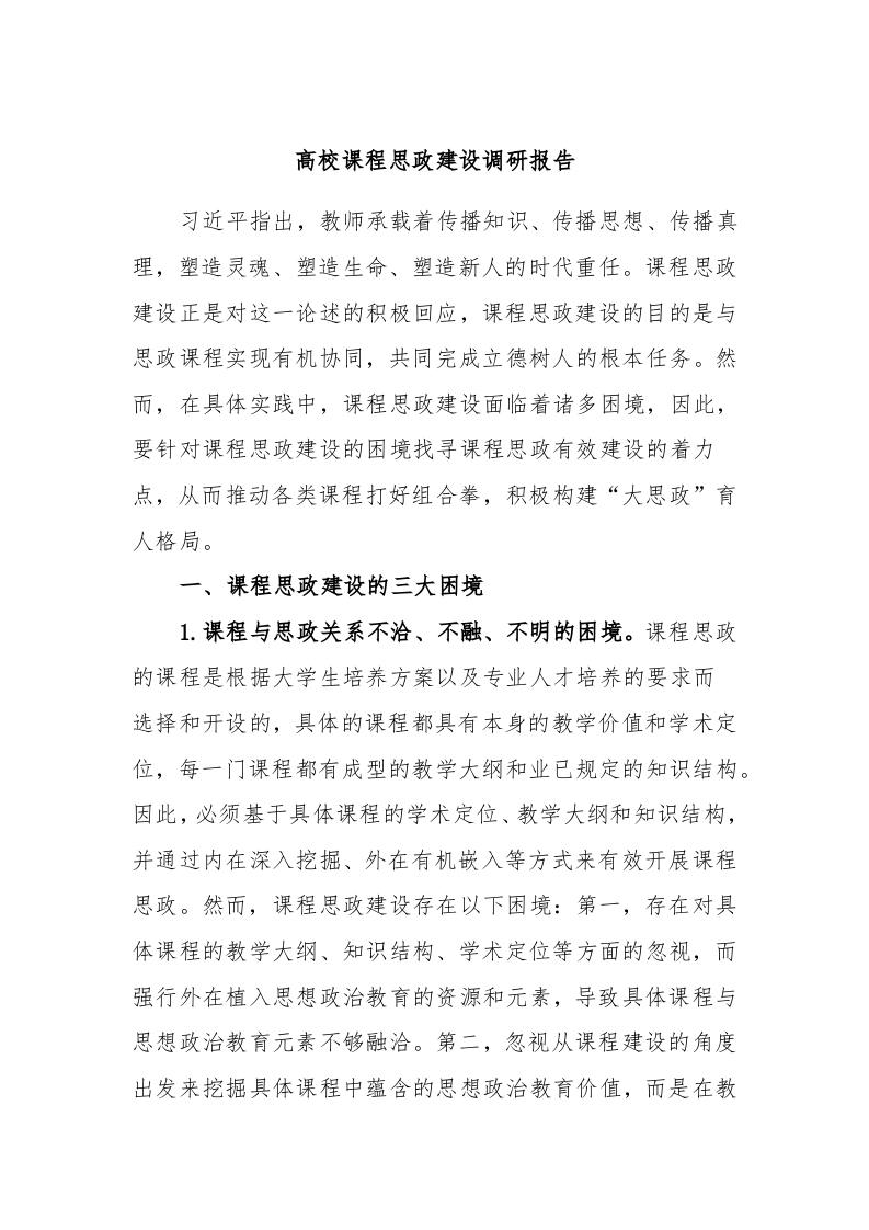 / 高校课程思政建设调研报告