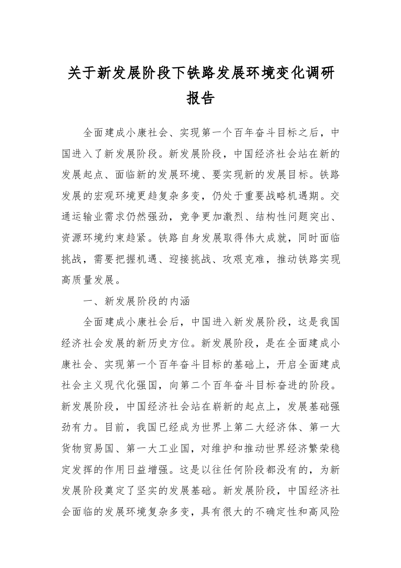 / 关于新发展阶段下铁路发展环境变化调研报告