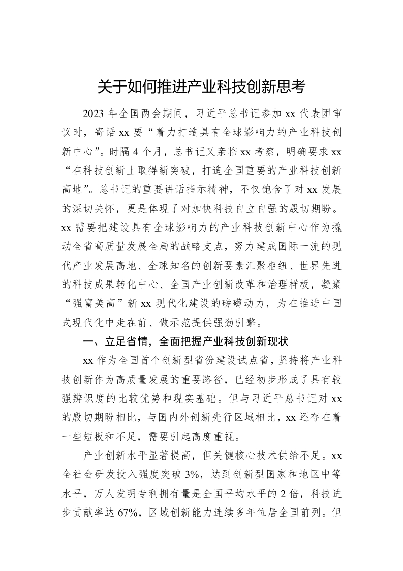 / 关于如何推进产业科技创新思考