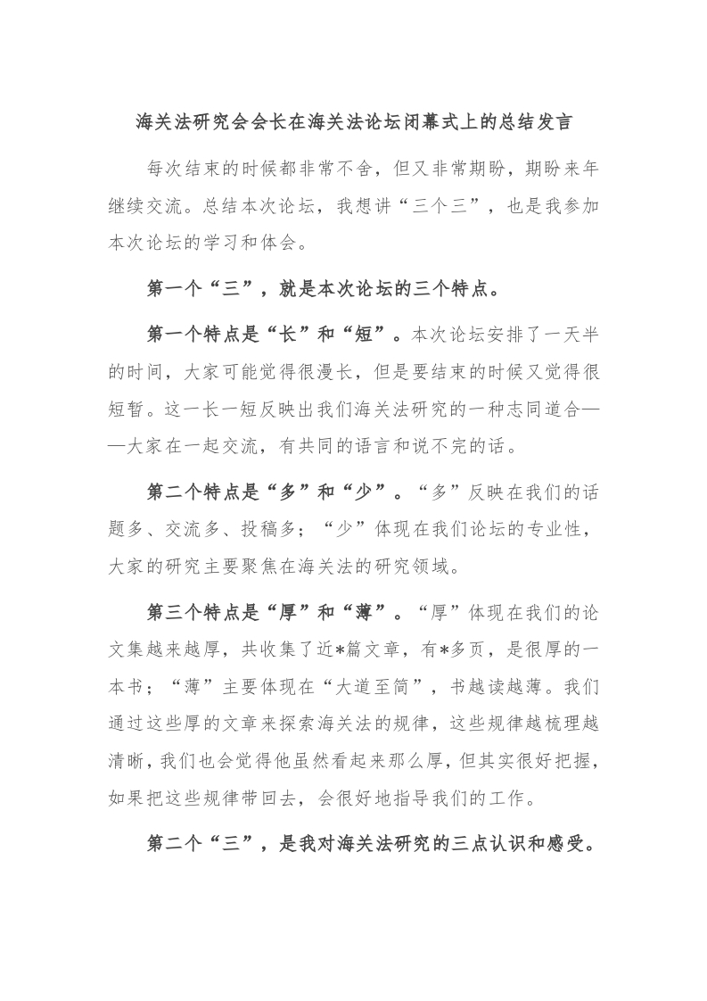 / 海关法研究会会长在海关法论坛闭幕式上的总结发言