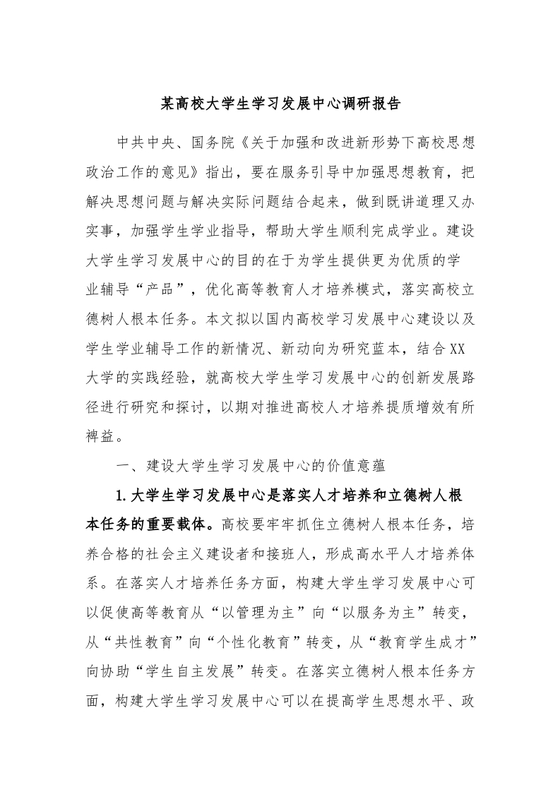 / 某高校大学生学习发展中心调研报告